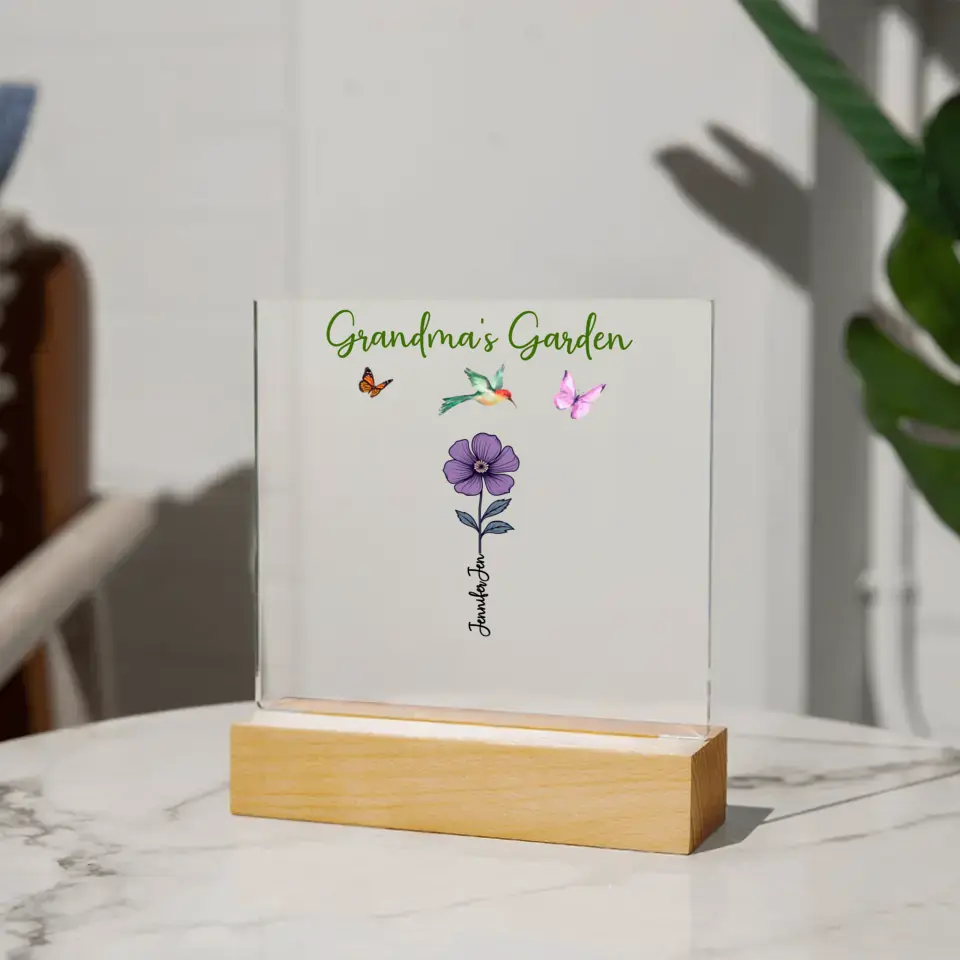 🌿 Why "Grandma's Blossoming Garden"? This unique plaque captures the essence of Grandma's garden, where each flower represents a grandchild's birth month. It's not just a gift; it's a legacy, a garden of love that blooms forever in crystal-clear premium acrylic.
