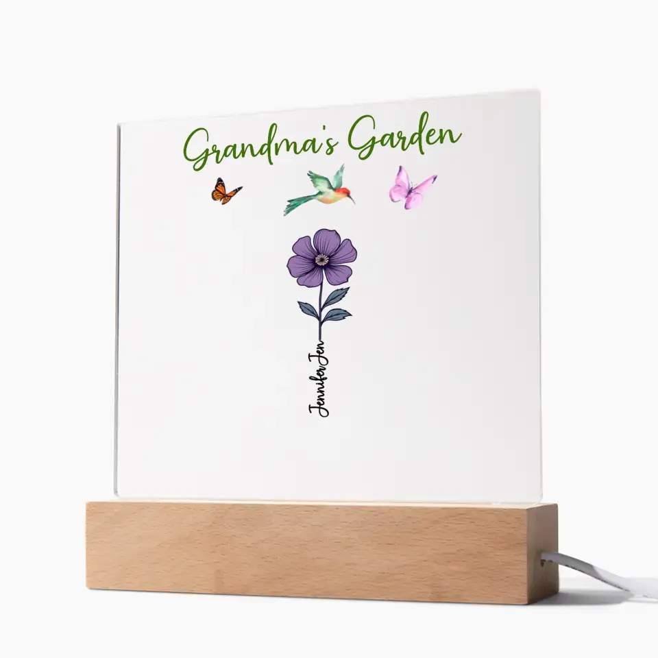 💖 Exclusive to Gifts4AllOfUs.com This bespoke piece is only available here. With every order lovingly packaged, the "Grandma's Blossoming Garden" Square Acrylic Plaque is ready to become a treasured keepsake in your family's history.