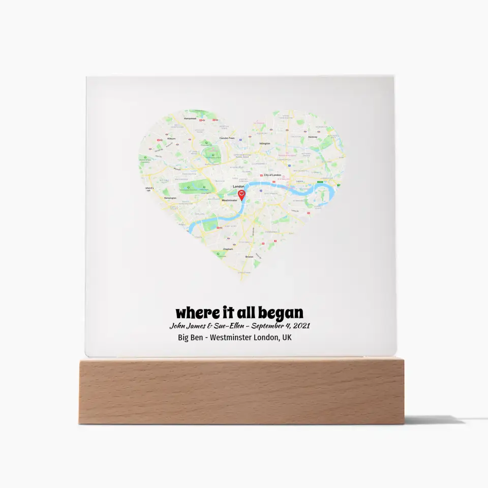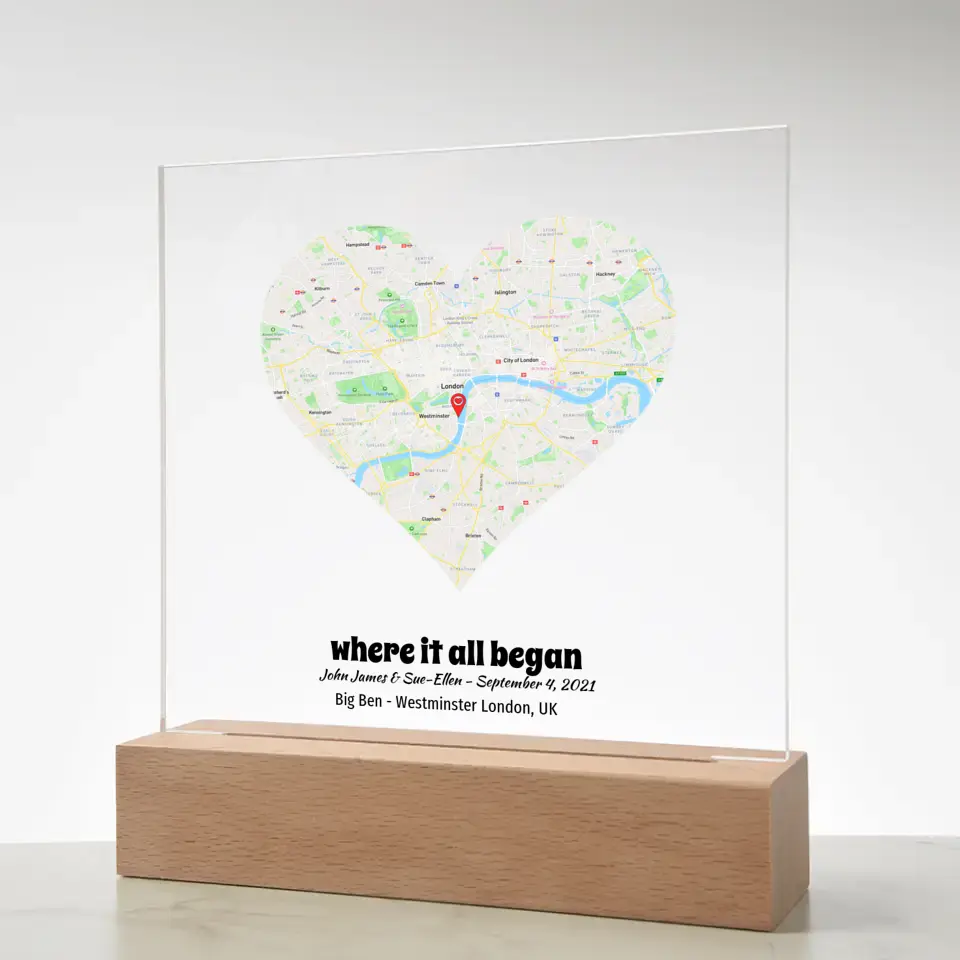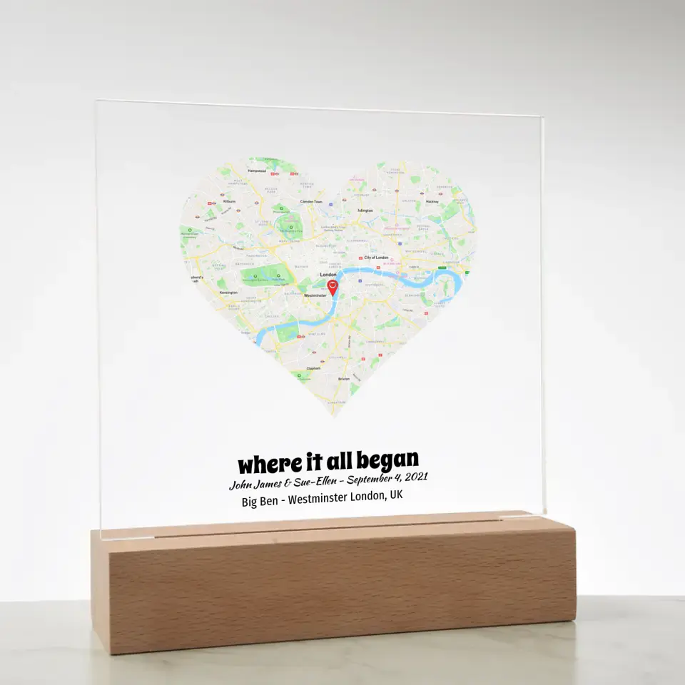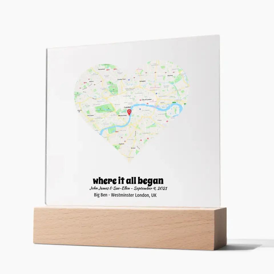 Acrylic - Personalized "Heart" Map - Where It All Began