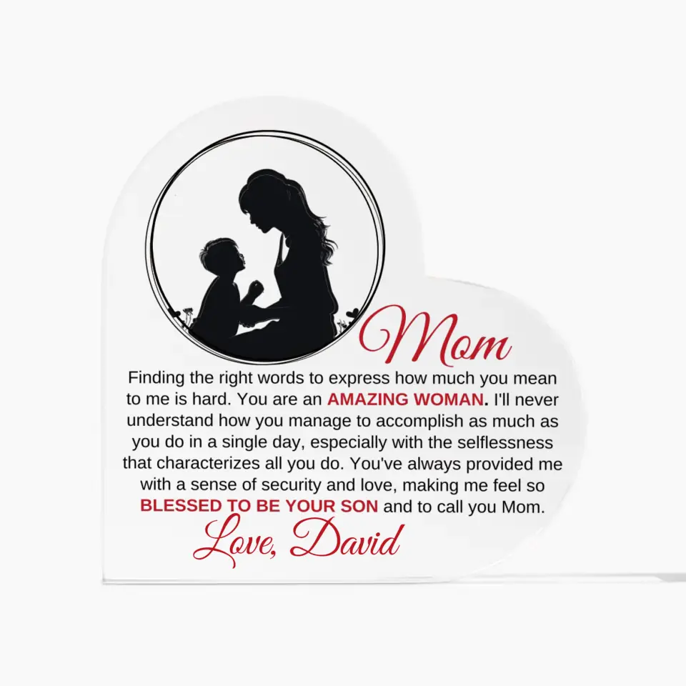Don't let another day pass without telling your mom how incredible she is. Purchase the "Eternal Love for Mom" Heart-Shaped Acrylic Plaque today, exclusively at Gifts4allofus.com, and make her feel as AMAZING and BLESSED as she truly is! 💕