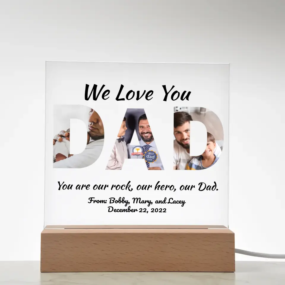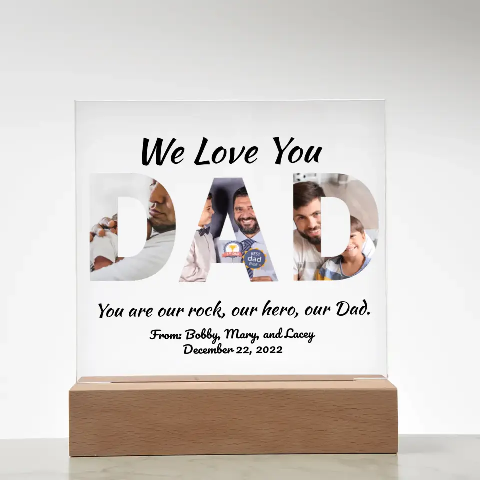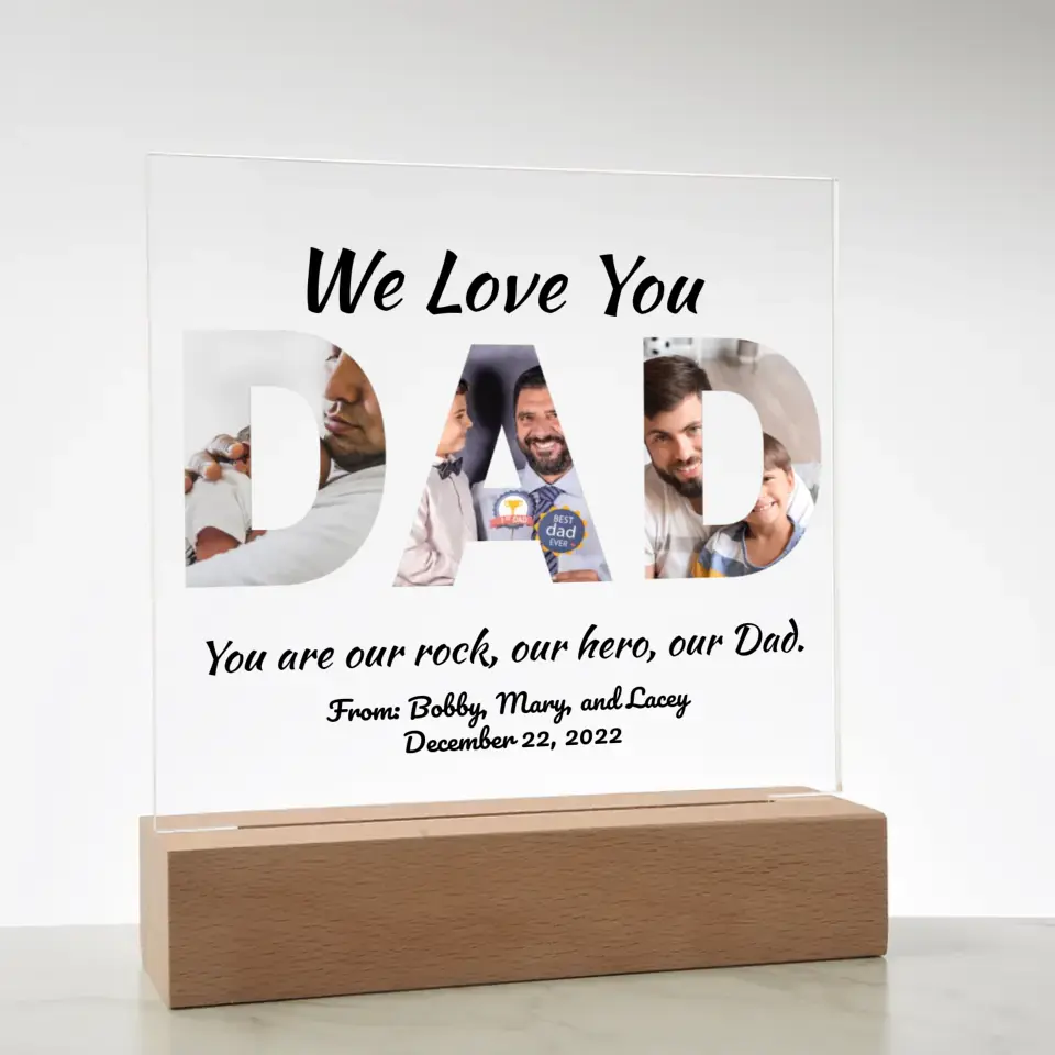 Combine modern technology and a heartfelt message with our Square Acrylic Plaque! This design is printed on crystal-clear premium acrylic and easily becomes the centerpiece of any room. And the contemporary design wouldn't be complete without its sleek wooden base, elevating the display that will instantly become a conversation starter. Create a memorable presentation when you upgrade to the LED wooden base!