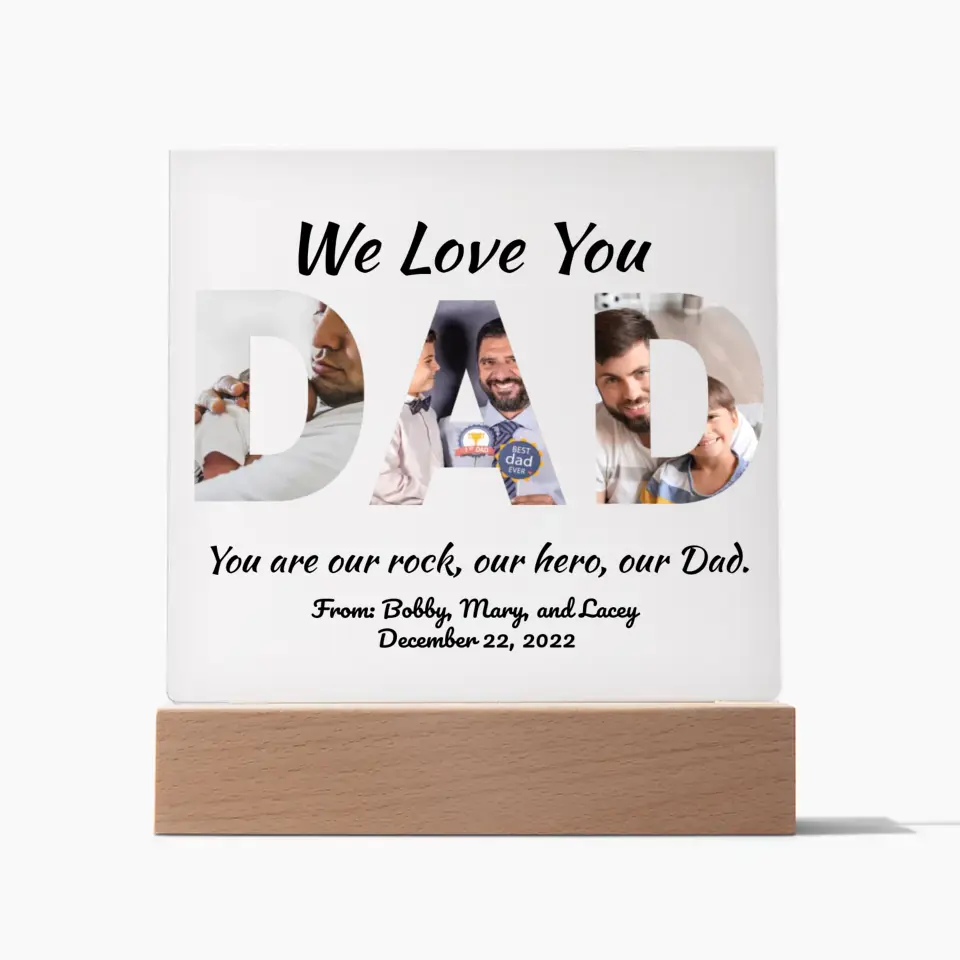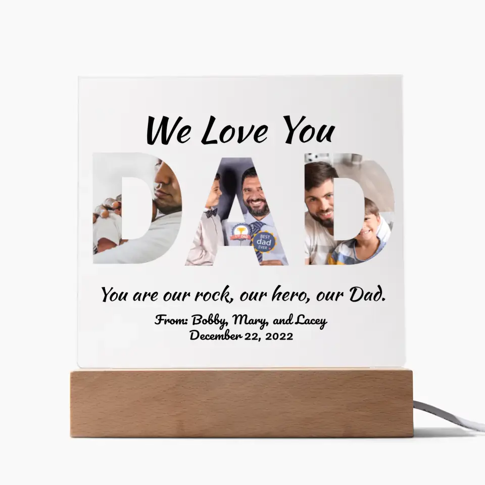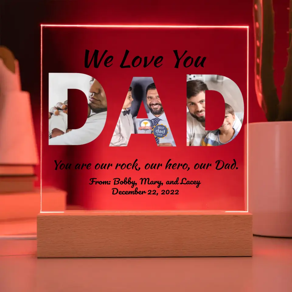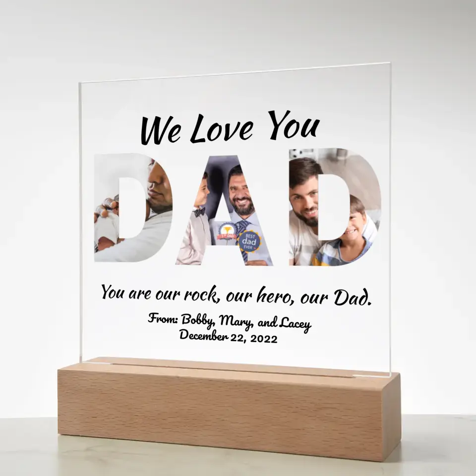 Combine modern technology and a heartfelt message with our Square Acrylic Plaque! This design is printed on crystal-clear premium acrylic and easily becomes the centerpiece of any room. And the contemporary design wouldn't be complete without its sleek wooden base, elevating the display that will instantly become a conversation starter. Create a memorable presentation when you upgrade to the LED wooden base!