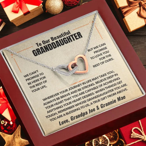 Grandparent to Granddaughter - Intertwined Hearts Keepsake Necklace Gift Set - Custom Greeting and Sign-Off