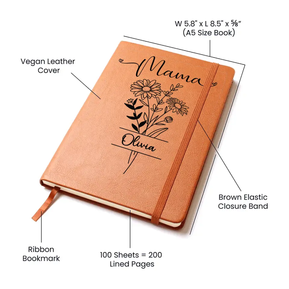 Graphic Journal | Birth Month Flower with Heading | Personalized with Name | Mothers Day | Gift