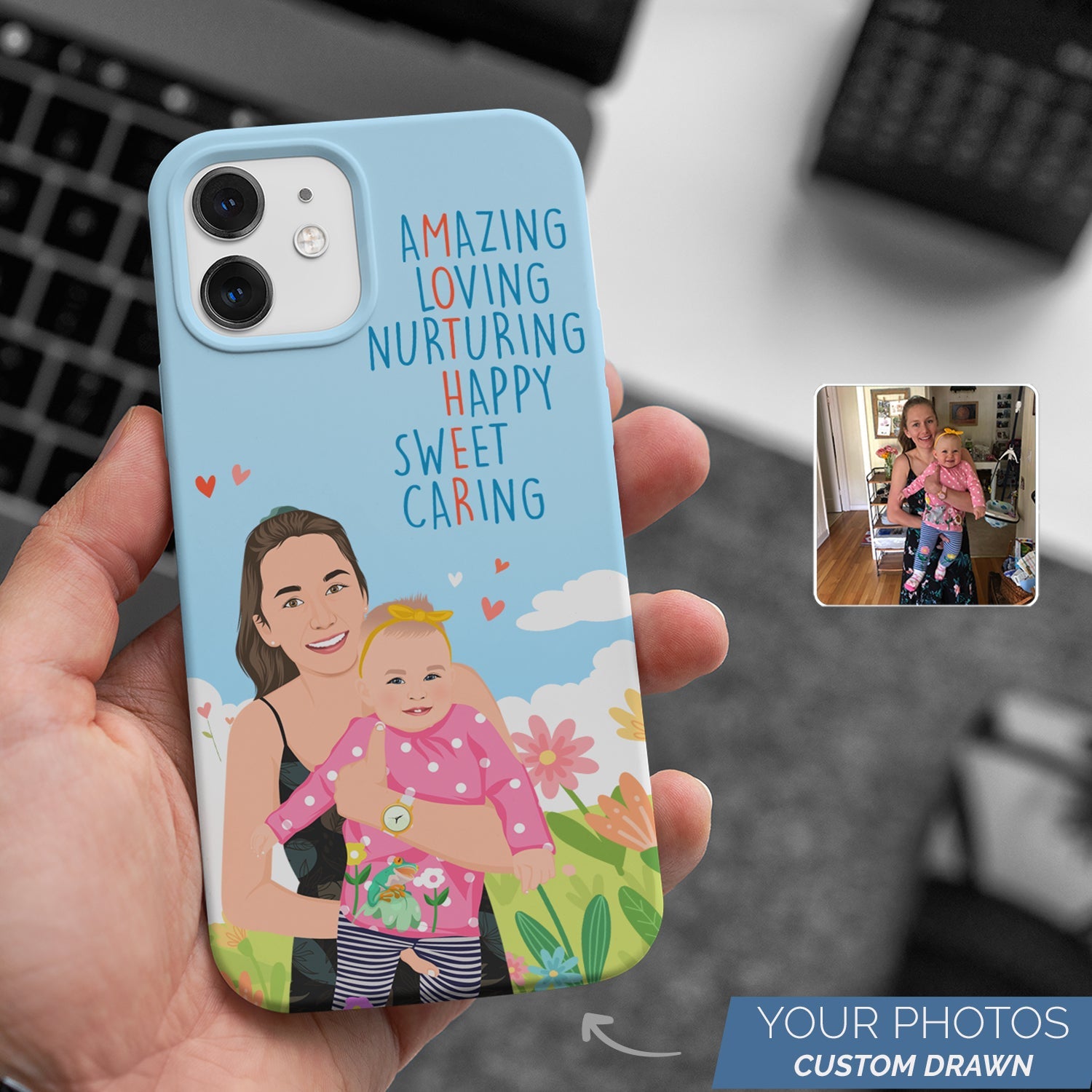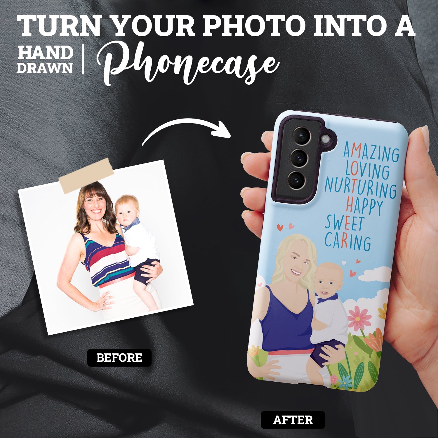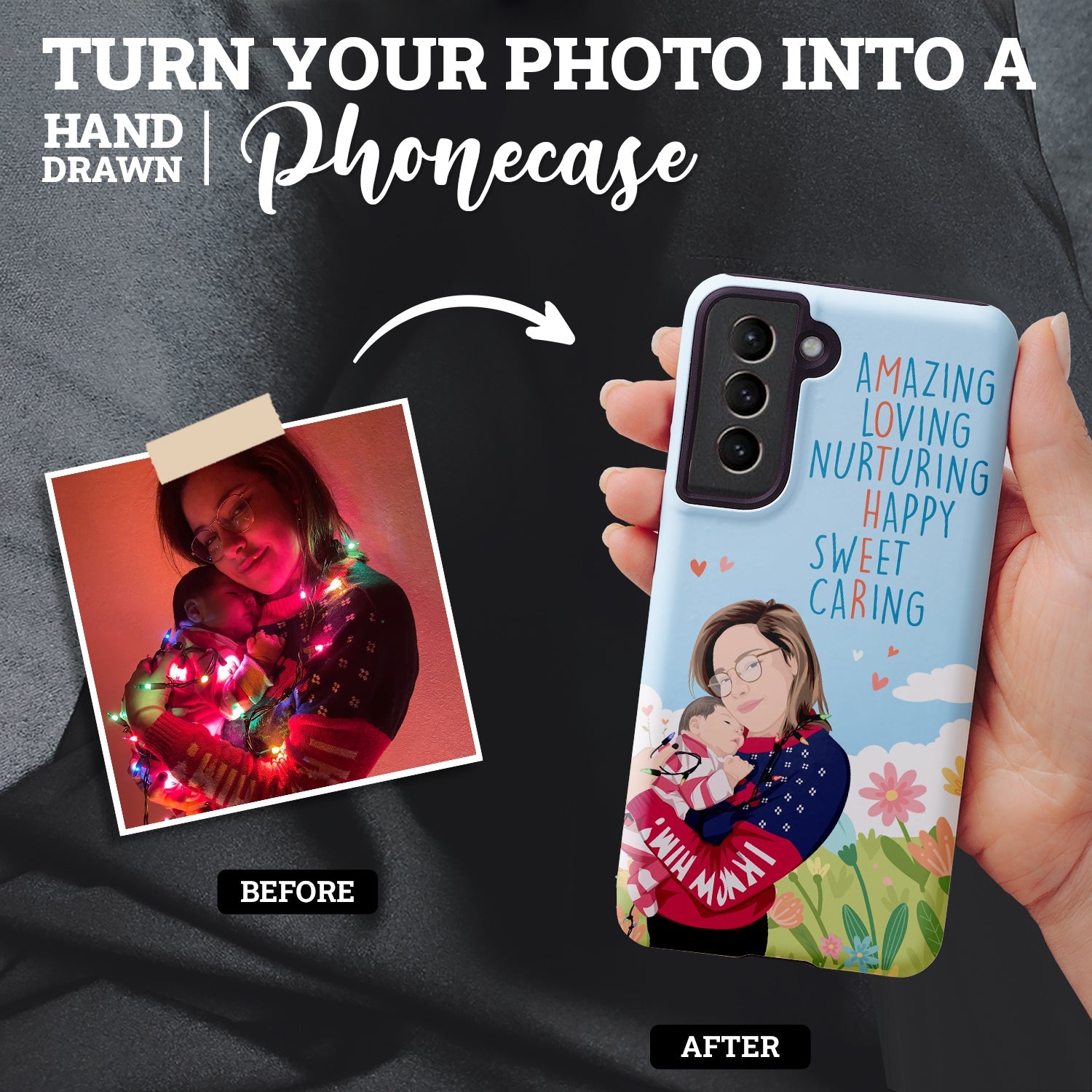 If your mother is like most mothers, she loves her phone. Why not surprise her this Mother's day with a personalized phone case? We turn your favorite photos of your mother into custom hand-drawn illustrations that will make her smile every time she takes a call or checks her messages.