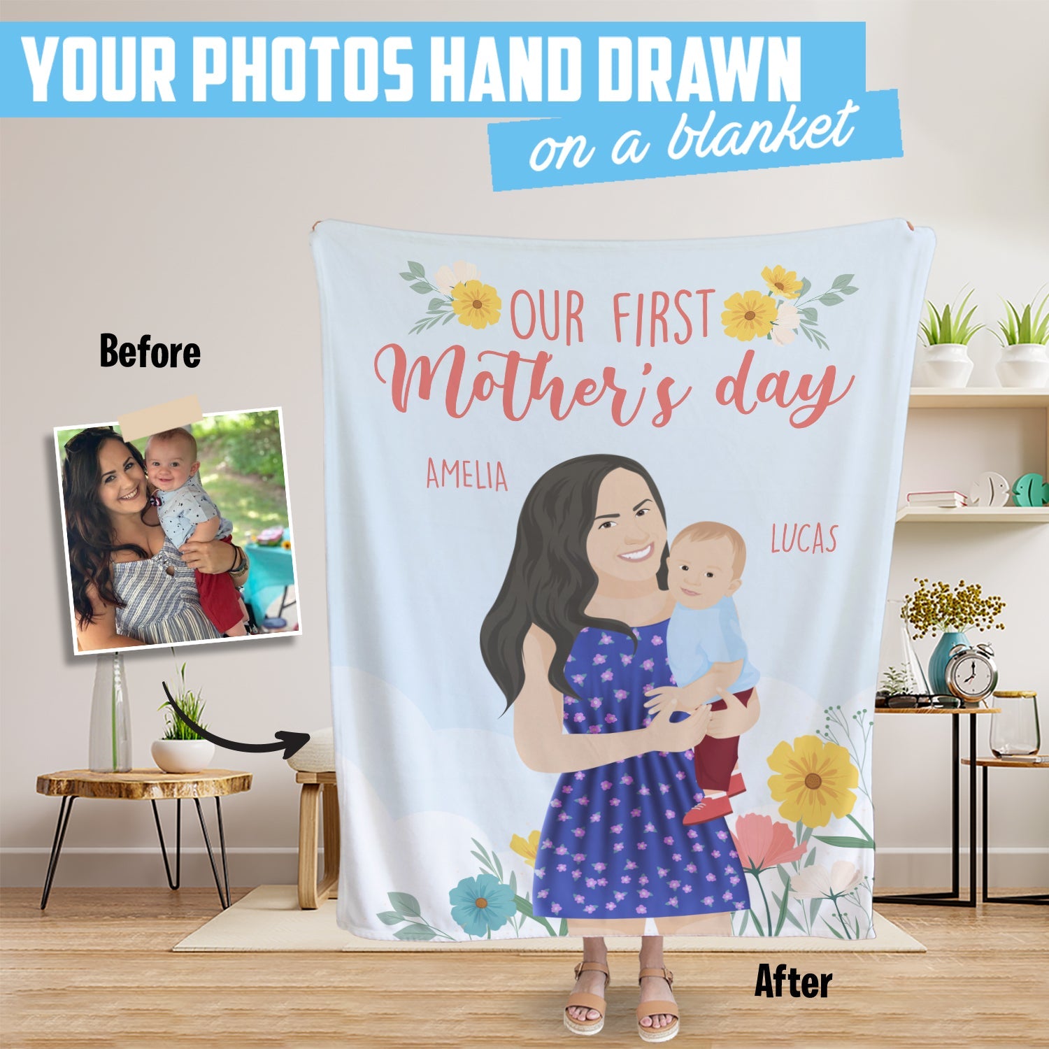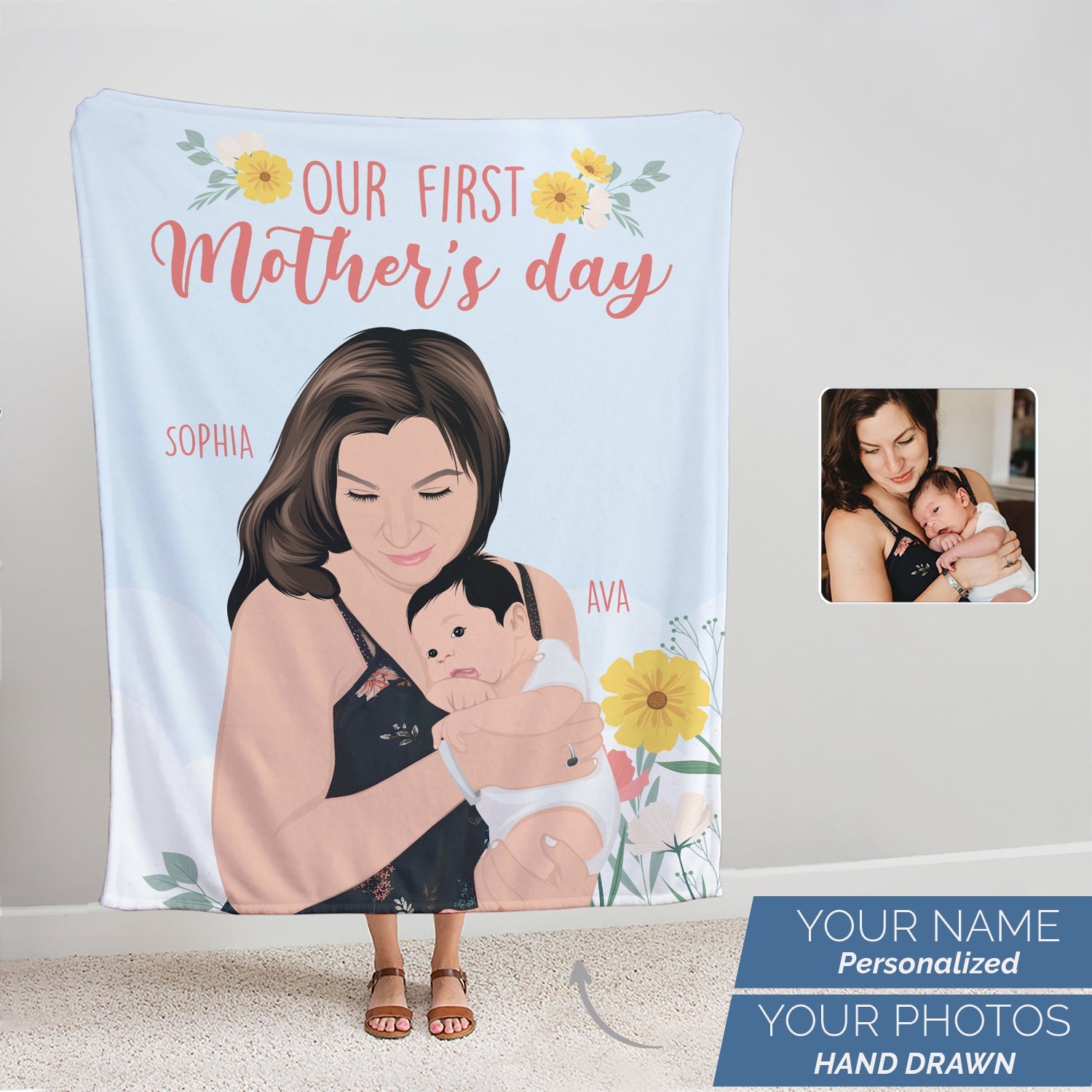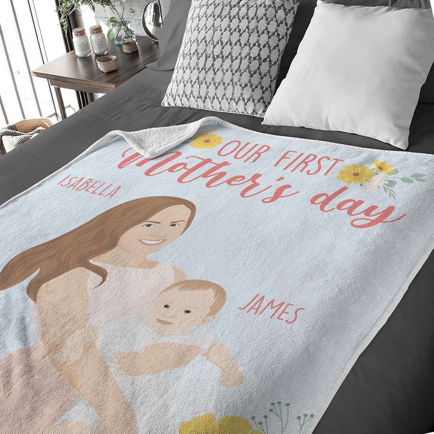 Create your blanket personalized for your first Mother's Day gifts.