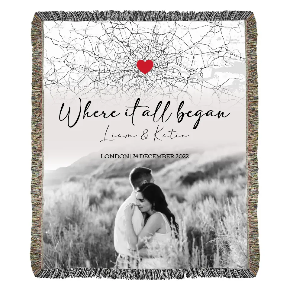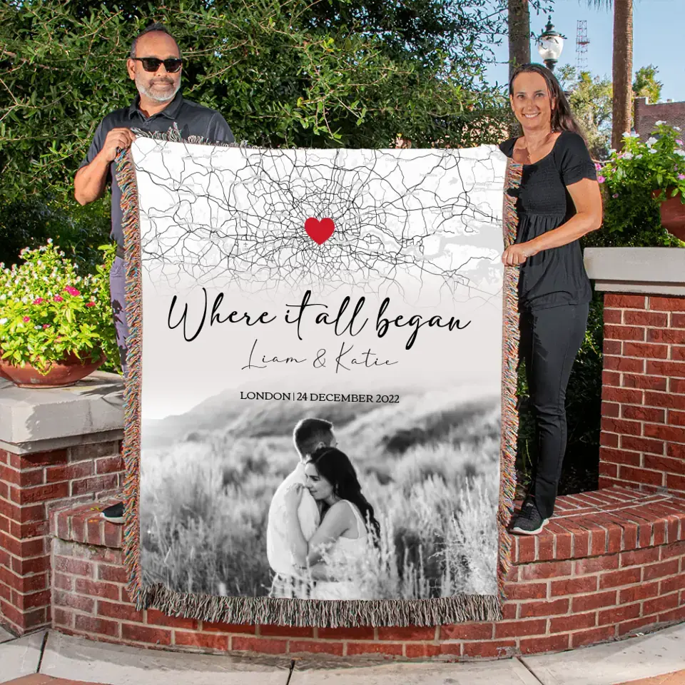 Where it all Began | Personalized Couple Photo Monochromatic | Heirloom Woven Blanket